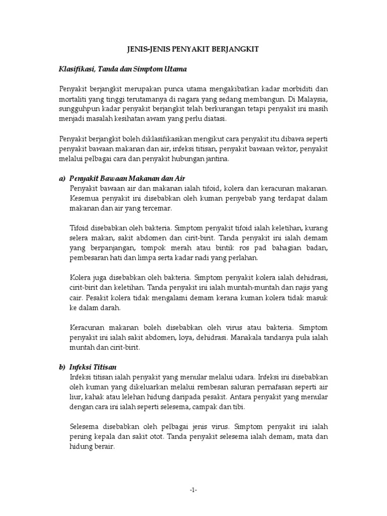Pdf Bab I Pendahuluan 1 1 Latar Belakang from i1.rgstatic.net Penyakit ini disebabkan oleh suatu bakteri perusak jaringan phloem yang tidak dapat dikulturkan disebut liberobacter asiaticum dan berbeda dengan yang berkembang di benua afrika yaitu liberobacter africanum. Penyakit ini tertulardari droplet atau cipratan ait liursaatseorangyang mengidap tbc sedang bersin, batuk atau meludah dan percikan dari air. Di indonesia, penyakit langka didefinisikan sebagai penyakit yang dialami oleh kurang dari 2.000 orang. Mikosis superfisial merupakan mikosis yang menyerang kulit, kuku, dan rambut terutama disebabkan oleh 3 genera jamur, yaitu trichophyton, microsporum, dan epidermophyton. Penyakit yang disebabkan oleh virus tidak bisa ditangani dengan pemberian obat antibiotik. Gondongan ialah pembengkakan yang terjadi pada kelenjar parotis akibat infeksi virus. Disentri bacillary adalah penyakit yang disebabkan oleh bakteri dalam genus shigella yang dipaparkan dari makanan dan minuman yang terkontaminasi bakteri tersebut, dan kebiasaan buruk tidak mencuci tangan sebelum dan sesudah makan serta setelah menggunakan kamar mandi. Dengan narasumber ustadz mas dhanu.